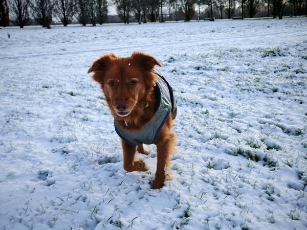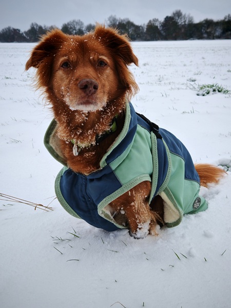 Also ganz schnell die dicken Winterklamotten angezogen, Phoebe den Mantel übergestreift, und ab ging es in den Schnee.